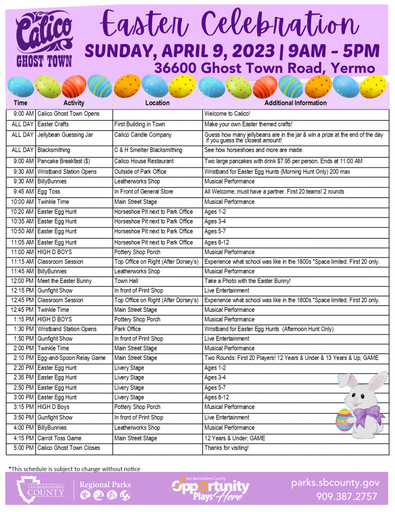 - Easter Crafts: Boot ‘N’ Saddle (near Main Street Stage).
