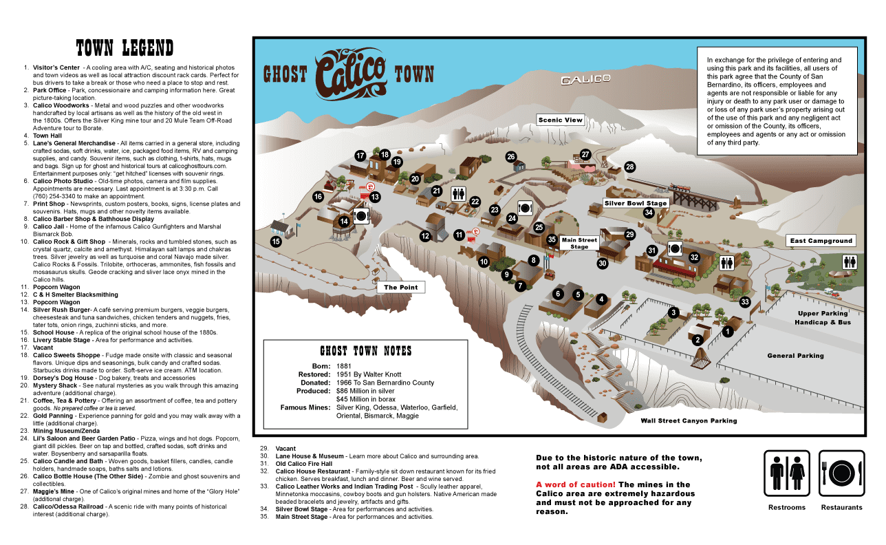 Experience a real 1880s classroom and history lessons miner children learned. Calico was home to many children and teachers. Space is limited to the first 20 people each session.