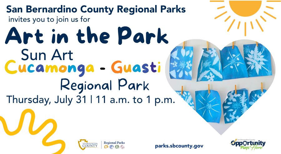 Create art with the power of the sun at our drop-in activity, no registration required! Join the San Bernardino County Regional Parks’ Team for a fun and unique Sun Art activity where nature and creativity come together!