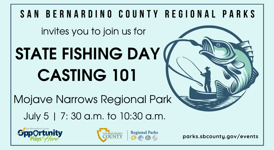 Start your Saturday morning off and join the Veterans Fly Fishing Club for Casting 101 demos and support at Mojave Narrows Regional Park! Drop-in, no registration required from 7:30 A.M. to 10:30 A.M., bring the whole family! Whether you’re a beginner or professional, it’s a great way to celebrate State Fishing Day with your community. Don’t miss out on all the catches- see you there!