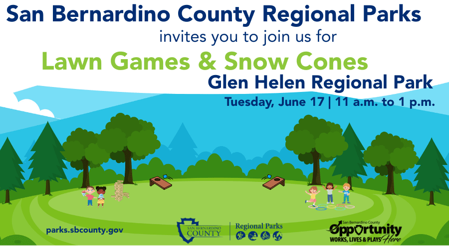 Fun, games, and sweet treats await! Join the San Bernardino County Regional Parks’ Team for a day of classic lawn games and refreshing snow cones! Bring the whole family and challenge each other to cornhole, giant Jenga, sack races, and more—then cool off with a delicious snow cone in your...