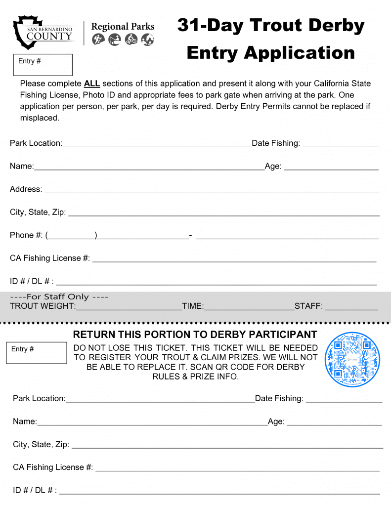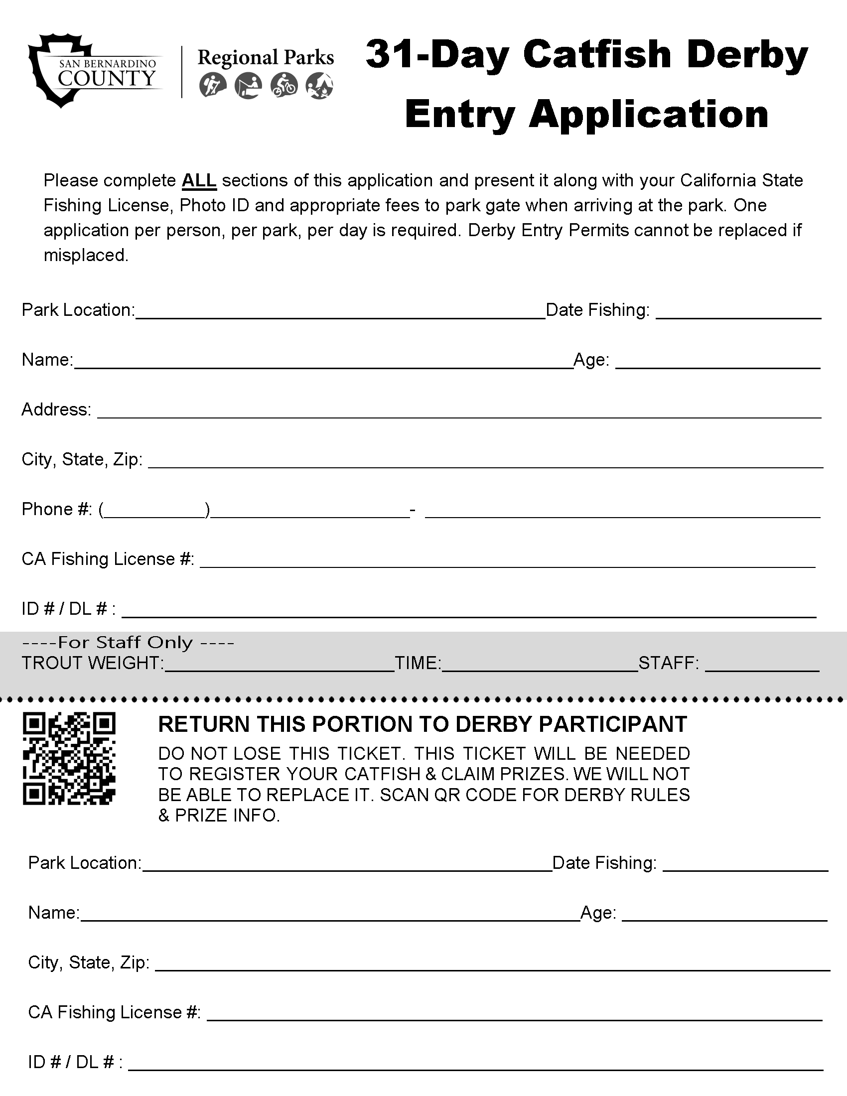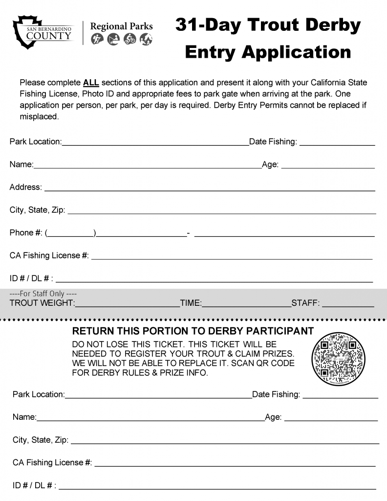 Participants will receive a wristband and packet with derby entry forms and rules. The derby is rain or shine, and no refunds will be given.